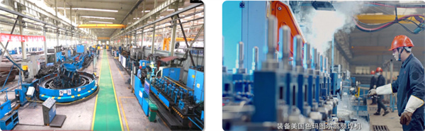 此生产线将焊管、平头和水压工序连成一条线,实现一个流生产,确保每支钢管全部经过打压才能下线。
