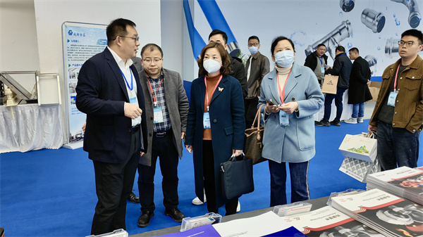 展会期间,武汉市水务局规划建设处处长高山莅临玫德集团展位参观指导,玫德雅昌营销中心总裁高永存接待并讲解。