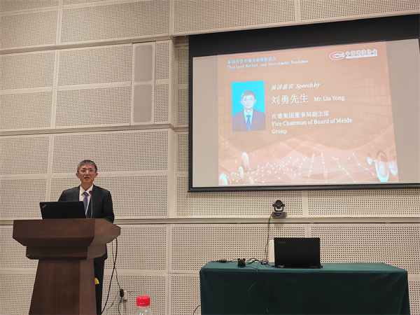 5月10日当天,在泰国投资市场及政策解读会上,玫德集团董事局副主席刘勇进行了“玫德集团泰国投资经验”的分享,介绍了玫德集团的全球化市场战略。