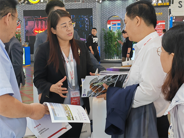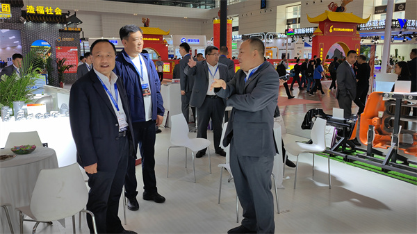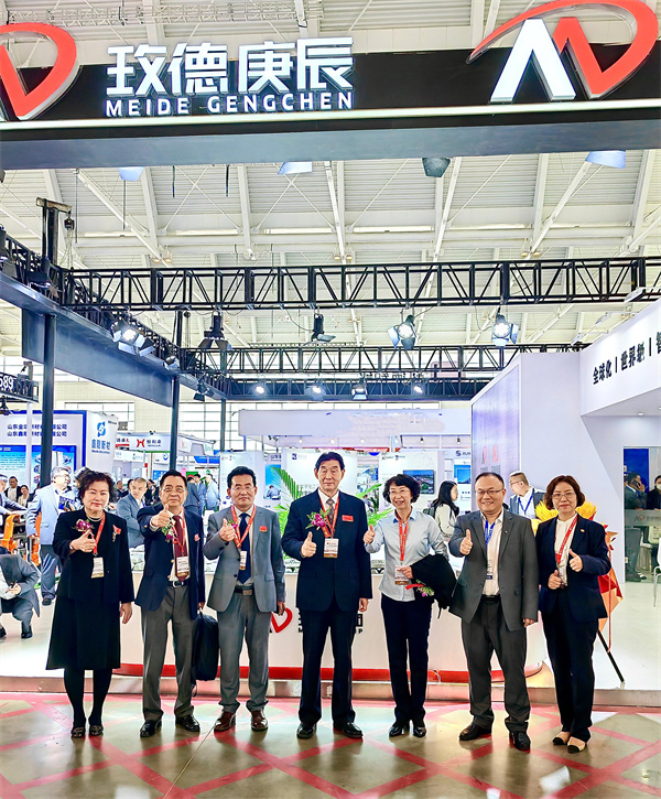 玫德集团董事局副主席刘勇、临沂玫德庚辰金属材料有限公司总裁于瑞水、济南科德智能科技有限公司总裁刘少云在展会现场指导工作并与客户深入交流。