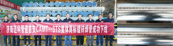11月1日,济南迈科管道科技有限公司正式全面推行“STS(钢管标准)”集体商标,首支印有CAMT-STS集体商标镀锌钢管成功下线。
