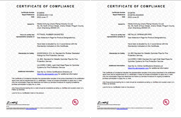 2023年,玫德雅昌(济南)管业有限公司生产的迈克牌碳钢卡压管路产品,助力宁德时代、远景动力等中国锂电头部企业在海外的锂电仓储和储能项目实施。进入海外市场的第一个门槛就是认证,迈克牌管路产品取得了美国的UL、FM认证,是国内首家拿到此认证的企业,目前也是唯一一家。