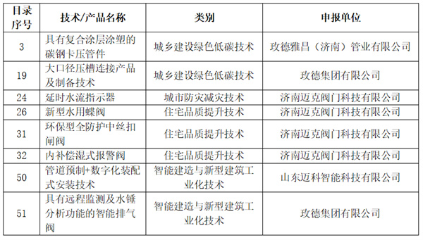 玫德集团入围山东省建筑业推广应用技术目录技术清单