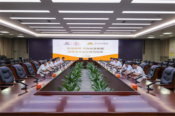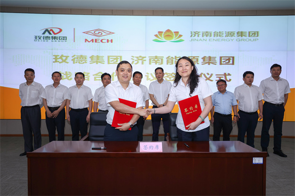 2025年6月30日,玫德集团与济南能源集团在济南举行战略合作协议签约仪式。市政BG总裁周志伟与济南能源集团财务总监张琦代表双方签署协议。董事局主席孔令磊与济南能源集团党委书记、董事长潘世英以及双方团队成员出席仪式见证签约。
